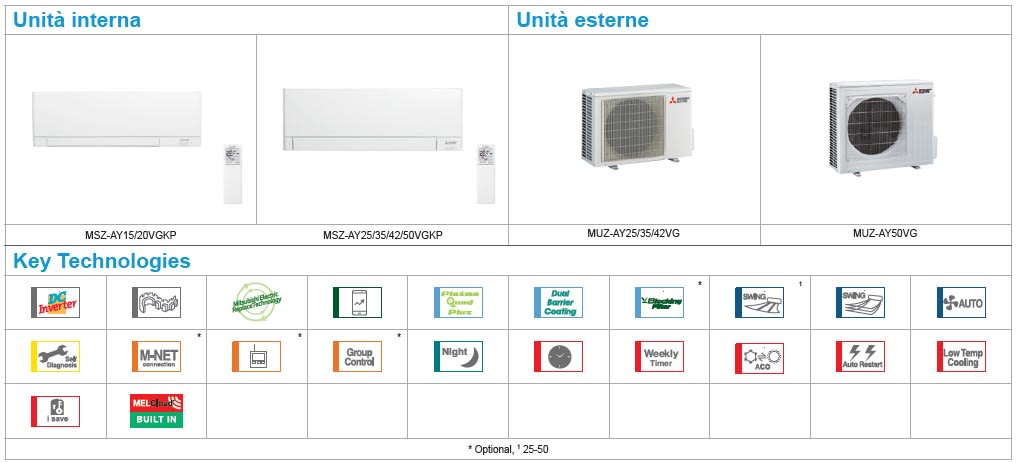 Gas refrigerante R32 a basso impatto ambientale Finitura Matt e design elegante Elevata efficienza energetica stagionale Timer settimanale Tecnologia Dual Barrier Coating Self Clean Mode per una migliore qualità dell'aria Controllo Wi-Fi MELCloud integrato