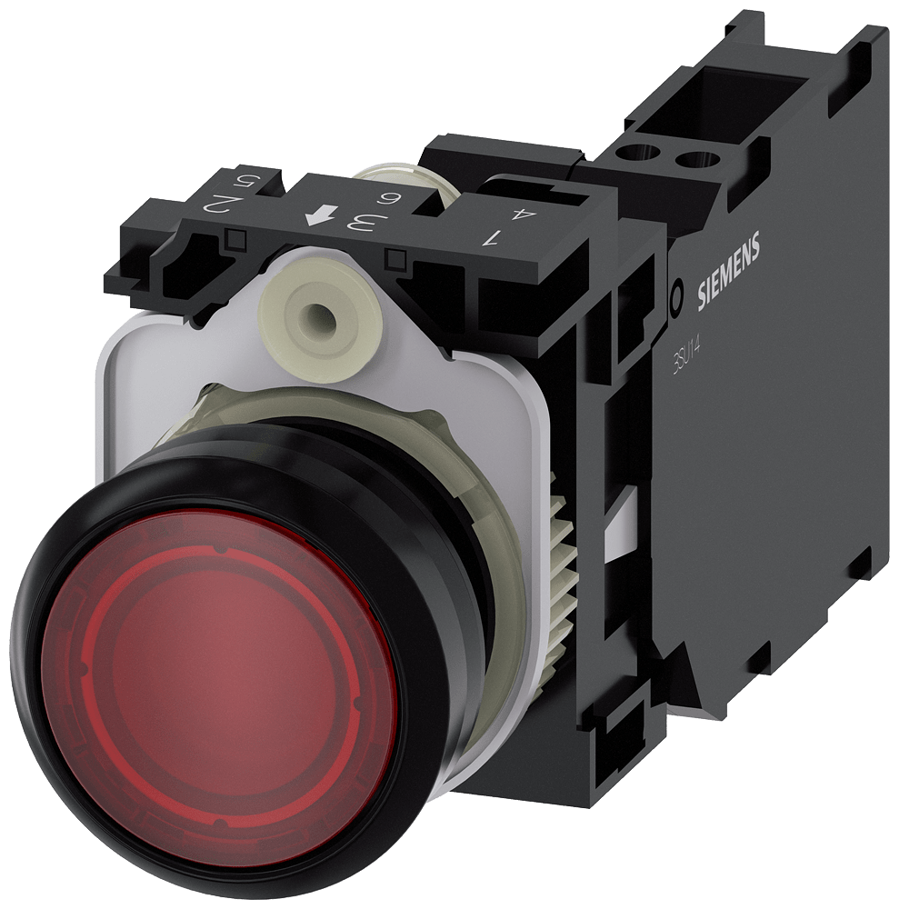 SIEMENS - SIE3SU11020AB203FA0 PULS.LUM.PLAST.ROSSO MOMENT 1NO+1NC LED2