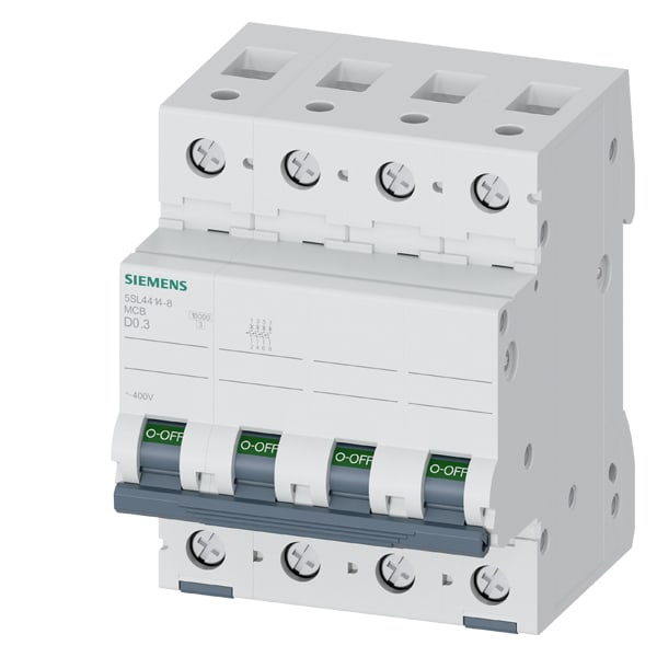 Interruttore magnetotermico 400V 10 kA, a 4 poli, D, 0,3 A Interruttore magnetotermico SENTRON per la protezione da cortocircuito e sovraccarico sicura per applicazioni standard in edifici residenziali e funzionali. Montaggio e smontaggio dellapparecchiosenza attrezzi. Semplice cablaggio dellalimentazione mediante la sbarra collettrice posteriore. Gli interruttori magnetotermici 5SL sono disponibili in esecuzione a 1, 2, 3, 4 poli nonché a 1 polo +N e a 3 poli +N nonché in ulteriori tipi speciali. I numerosi accessori, come ad es. i blocchetti di contatti ausiliari, consentono una varietà di ampliamenti funzionali. Semplicemente sicuri con gli apparecchi di protezione di SENTRON.