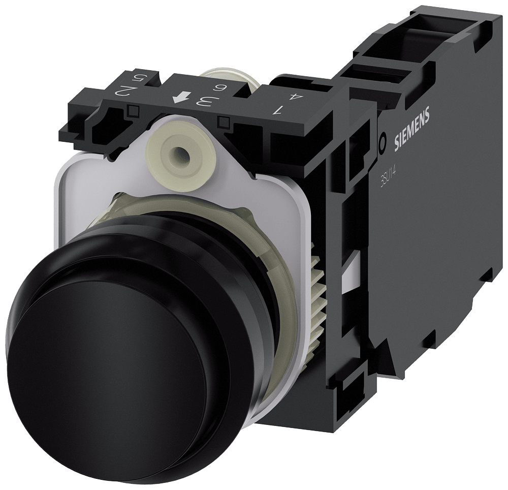 pulsante, 22 mm, rotondo, in plastica, nero, bottone, sporgente, ad impulso, con supporto 1 NO+1 NC, morsetto a vite, Pulsante SIRIUS ACT per la commutazione e il comando di utilizzatori elettrici. Siemens offre, sotto il nome commerciale SIRIUS ACT, un portfolio esclusivo di dispositivi di comando e segnalazione con omologazioni di prodotto per il mercato mondiale in tre moderne serie di design in robusto metallo puro e plastica pregiata.Linnovativo concetto di innesto a scatto semplifica talmente il montaggio che per eseguirlo basta una sola mano e non servono attrezzi speciali. Per i fori di montaggio sono sufficienti semplici fori non scanalati, essendo già integrata una protezione antirotazione al 100 %.Grazie al grado di protezione elevato i robusti apparecchi sono adatti allimpiego industriale e in ambiente esterno. È persino possibile la pulizia con getto ad alta pressione. Né polvere, né oli, né liscivia possono comprometterne il funzionamento affidabile.Oltre che con il cablaggio standard, gli apparecchi possono essere collegati al controllore anche tramite PROFINET, AS-Interface oppure IO-Link. Potete così ridurre il vostro onere di cablaggio, minimizzare le fonti di errore e ottenere maggiore flessibilità.Il configuratore online grafico supporta in modo confortevole la scelta e lordinazione di singoli apparecchi, pulsantiere e iscrizioni. È disponibile una documentazione completa (ad es. manuale, dati 3D, schema di collegamento). Esecuzioni fornibili: più colori, luminoso/non luminoso, con/senza iscrizione, comando permanente/ad impulso, diverse altezze di bottone e ghiera. Avvertenza: Apparecchio completo, fornitura incl. supporto e moduli. SIRIUS ACT - Performance in Action nel comando e nella segnalazione. Semplici da montare, altamente performanti, semplicemente perfetti.