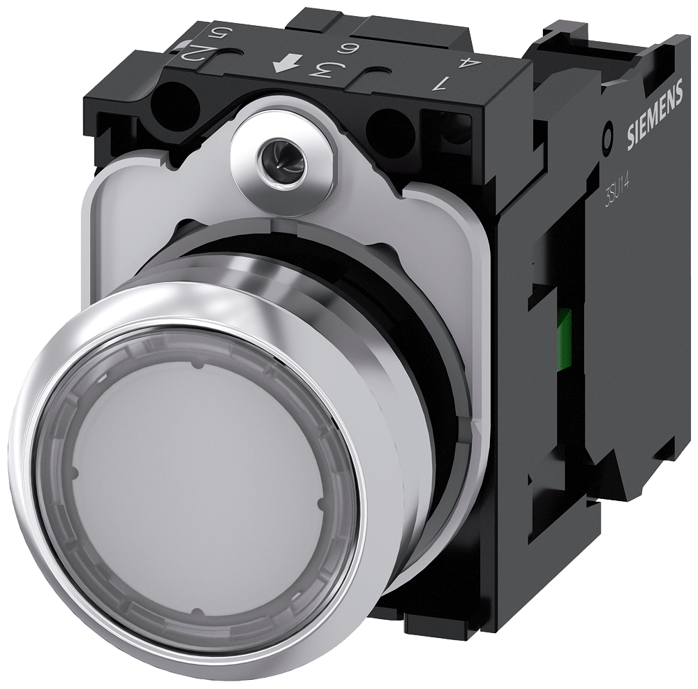 SIEMENS - SIE3SU11500AB701BA0 Pulsante, 22 mm, rotondo, in metallo lucido, trasparente, bottone, 1NO