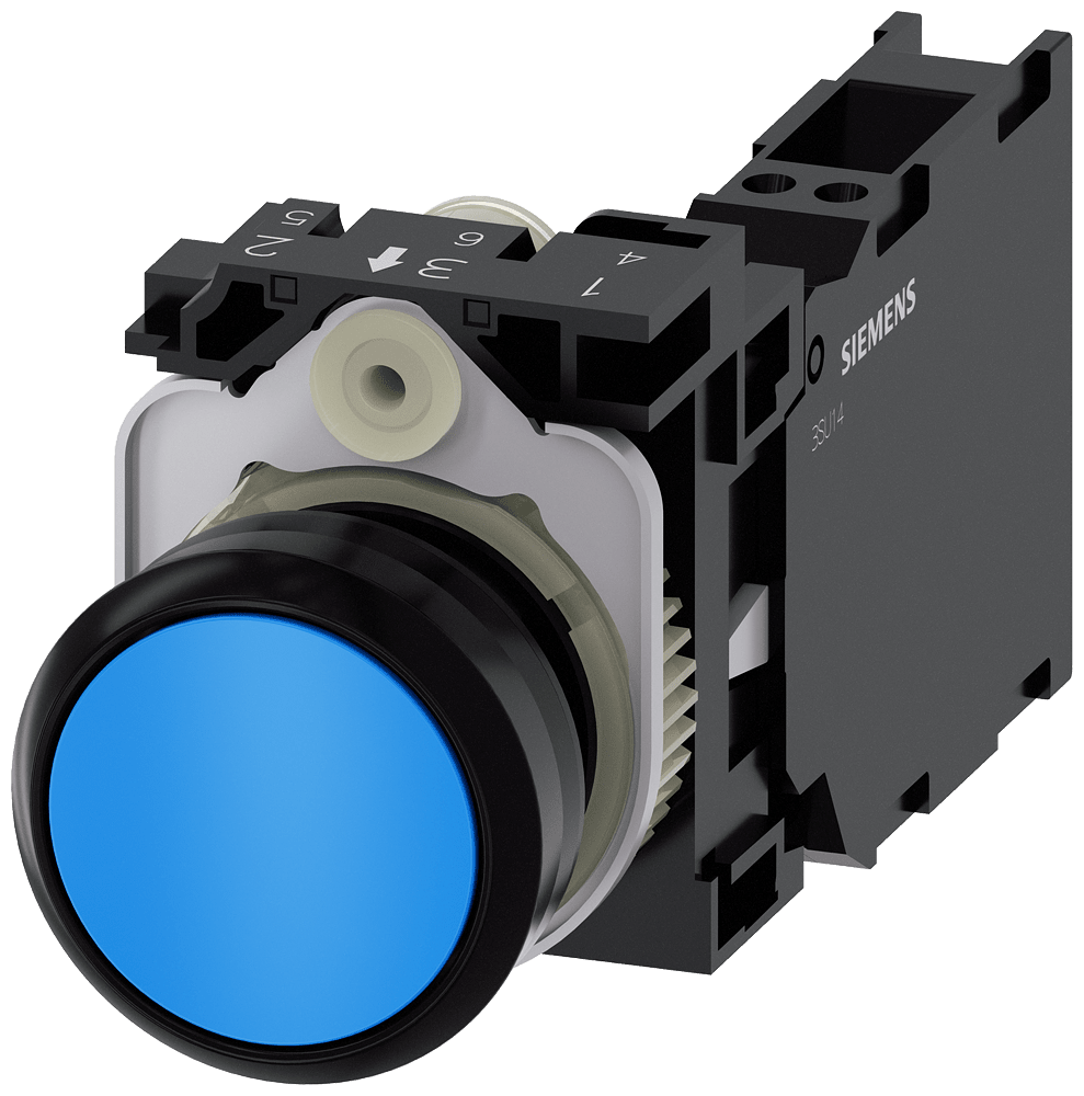 SIEMENS - SIE3SU11000AB503FA0 PULS.PIATTO MOMENT.PLAST.BLU 1NO+1NC MOL
