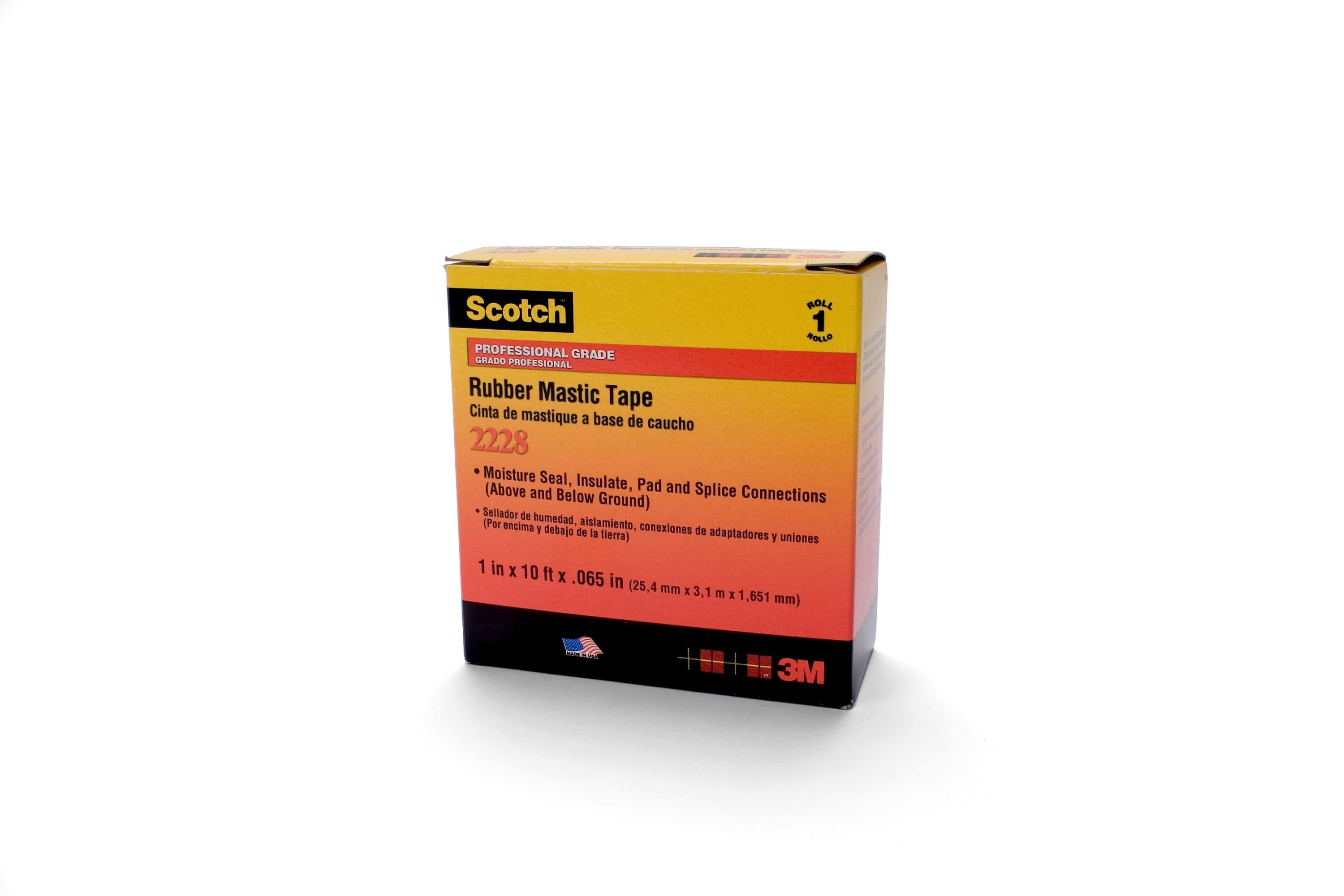 Nastro in mastice di gomma Scotch® 2228, 25 mm x 3,05 m, 10 per confezione. Nastro isolante autoagglomerante formato da un supporto in EPR ed un mastice adesivo. Può essere impiegato per il rivestimento e l’isolamento delle connessioni delle sbarre nei quadri e nelle cabine elettriche, consentendo di ottenere superfici regolari nei punti di incrocio. Offre un’eccellente protezione contro la corrosione e gli agenti atmosferici. Utilizzare questo nastro per isolare, imbottire e sigillare barre di distribuzione e giunzioni. Resiste fino a 90 °C.