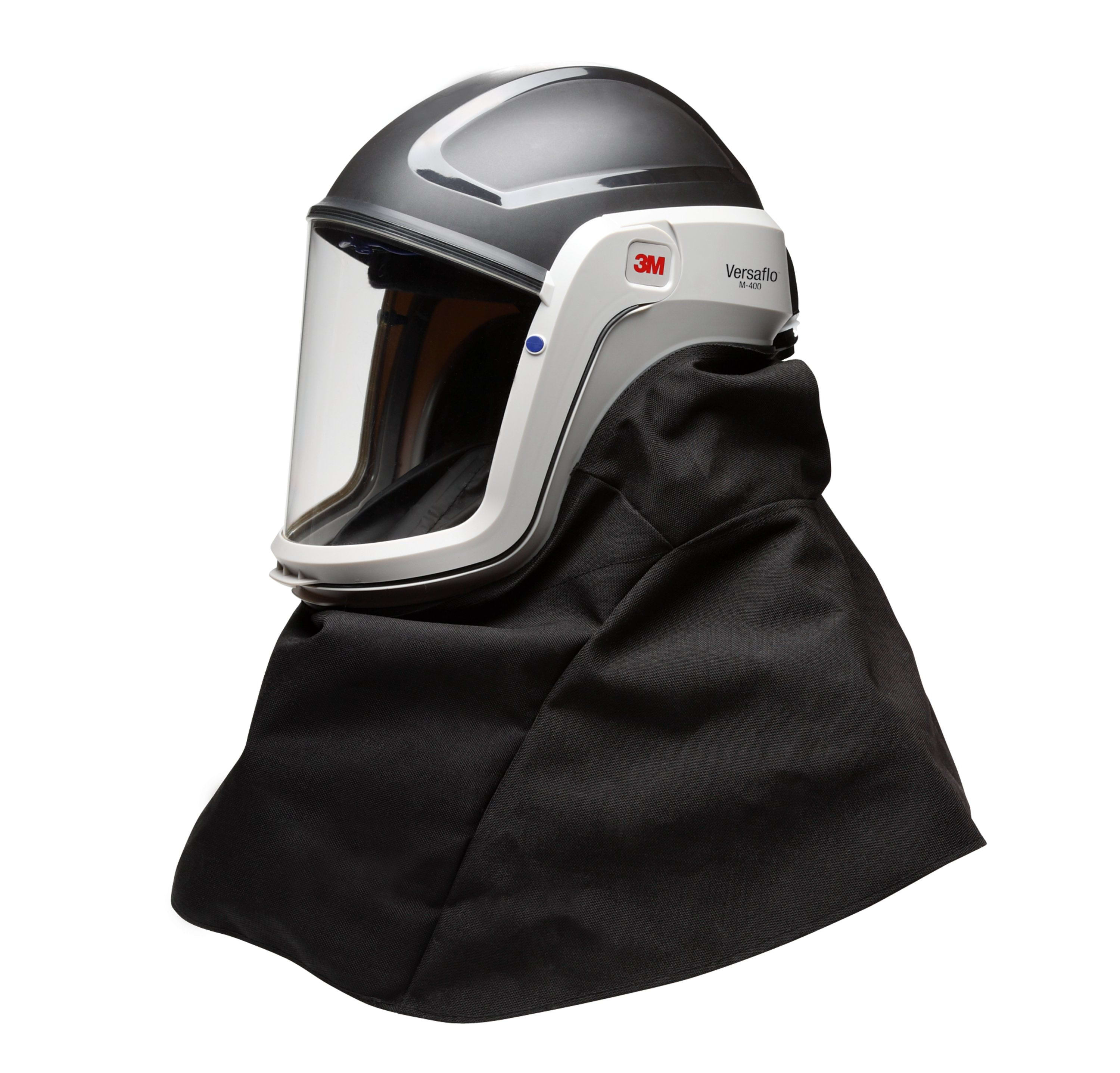 Gli elmetti 3M™ Versaflo™ con fodera serie M-400 offrono una protezione integrata da un'ampia gamma di rischi legati a vie respiratorie, testa, occhi e viso con una copertura aggiuntiva per collo e spalle. Da utilizzare con i respiratori elettroventilatie ad aria compressa 3M™ in un'ampia varietà di applicazioni.\nOttieni una protezione integrata e versatile da un'ampia gamma di pericoli industriali con gli elmetti 3M™ Versaflo™ con fodera serie M-400. Le fodere sono disponibili in un tessuto di nylon resistente adatto per le applicazioni nel settore edile e nell'industria pesante o in un tessuto poliaramidico ignifugo adatto per applicazioni con particelle calde, ad esempio in impianti di fusione, fonderie e altre applicazioni di lavorazione dei metalli.\n\nL'elmetto con fodera M-400 ha un design leggero, compatto e ben bilanciato che assicura la protezione delle vie respiratorie, della testa e del viso, nonché una copertura di testa, collo e spalle. In condizioni sicure, la visiera può essere sollevata senza rimuovere l'elmetto.\n\nLa bardatura completamente regolabile include cinghie in tessuto per un'ottimale vestibilità e distribuzione del peso, mentre il deflettore consente agli utilizzatori di indirizzare il flusso d'aria all'interno del copricapo, garantendo maggiore controllo e comfort.\n\nLa visiera offre un'eccellente visibilità periferica ed è realizzata in policarbonato rivestito per una maggiore resistenza ai graffi e agli agenti chimici. \n\nSoddisfano i più elevati requisiti prestazionali in ambito respiratorio (TH3) per questo tipo di prodotti se utilizzati con specifiche unità elettroventilate 3M™ e consentono una facile manutenzione grazie a parti di ricambio e accessori sostituibili in modo rapido, semplice e intuitivo.