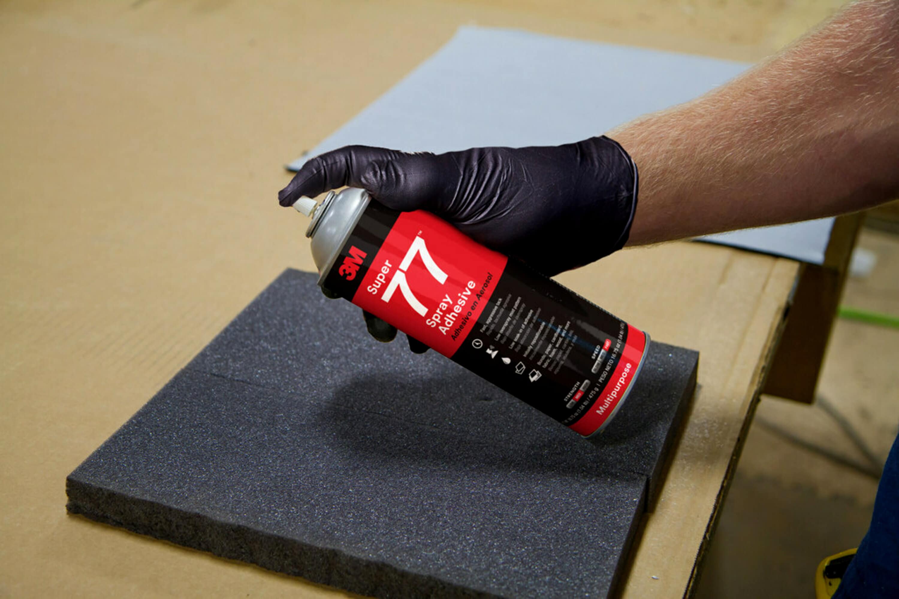 L'adesivo spray multiuso Super 77™ di 3M™ è uno spray adesivo trasparente, ad asciugatura rapida ed estremamente versatile che aderisce su un'ampia gamma di materiali leggeri. Il nostro sistema di fissaggio permanente e veloce offre risultati rapidi per non interrompere o rallentare la realizzazione dei progetti. La formula dello spray garantisce un'applicazione facile direttamente sulle superfici e sui materiali in uso.\nLa sua adesione aggressiva offre un'elevata presa iniziale e un tempo sufficiente per posizionare i materiali in modo corretto. L'alto contenuto di solidi supporta la sua proprietà di basso assorbimento, concedendo il tempo necessario per il posizionamento ottimale dei componenti. Questa caratteristica fornisce, inoltre, una copertura maggiore di quella offerta dagli adesivi spray concorrenti e permette di creare linee di colla uniformi e morbide. La combinazione delle sue caratteristiche di adesione rapida, fissaggio forte e precisione lo rende un prodotto ideale per tutti i progetti legati alla casa o alla sfera professionale. Forma fissaggi forti su un'ampia gamma di materiali incollando, ad esempio, carta, cartone, tessuto e cuscini in schiuma a materie plastiche, metallo, legno e altro. L'adesivo multiuso Super 77™ di 3M™ è conforme alle normative CARB e risponde ai requisiti dei crediti LEED.\n\nL'adesivo multiuso Super 77™ di 3M™ può essere impiegato nei seguenti ambiti:\n\n\n\nRinnovamento della casa e riparazione di progetti\n\nAttacco di sistemi di isolamento con vetroresina egiunti saldati in cartongesso\n\nFissaggio di tessuti, fogli e pellicole sottili\n\nScrapbooking, incorniciamento di foto e montaggio di presentazioni\n\nDecorazioni generiche e lavori artigianali, tra cui ghirlande, composizioni floreali in seta, realizzazione di modelli e molti altri progetti\n\nIdeale per la casa, l'ufficio e gli hobby