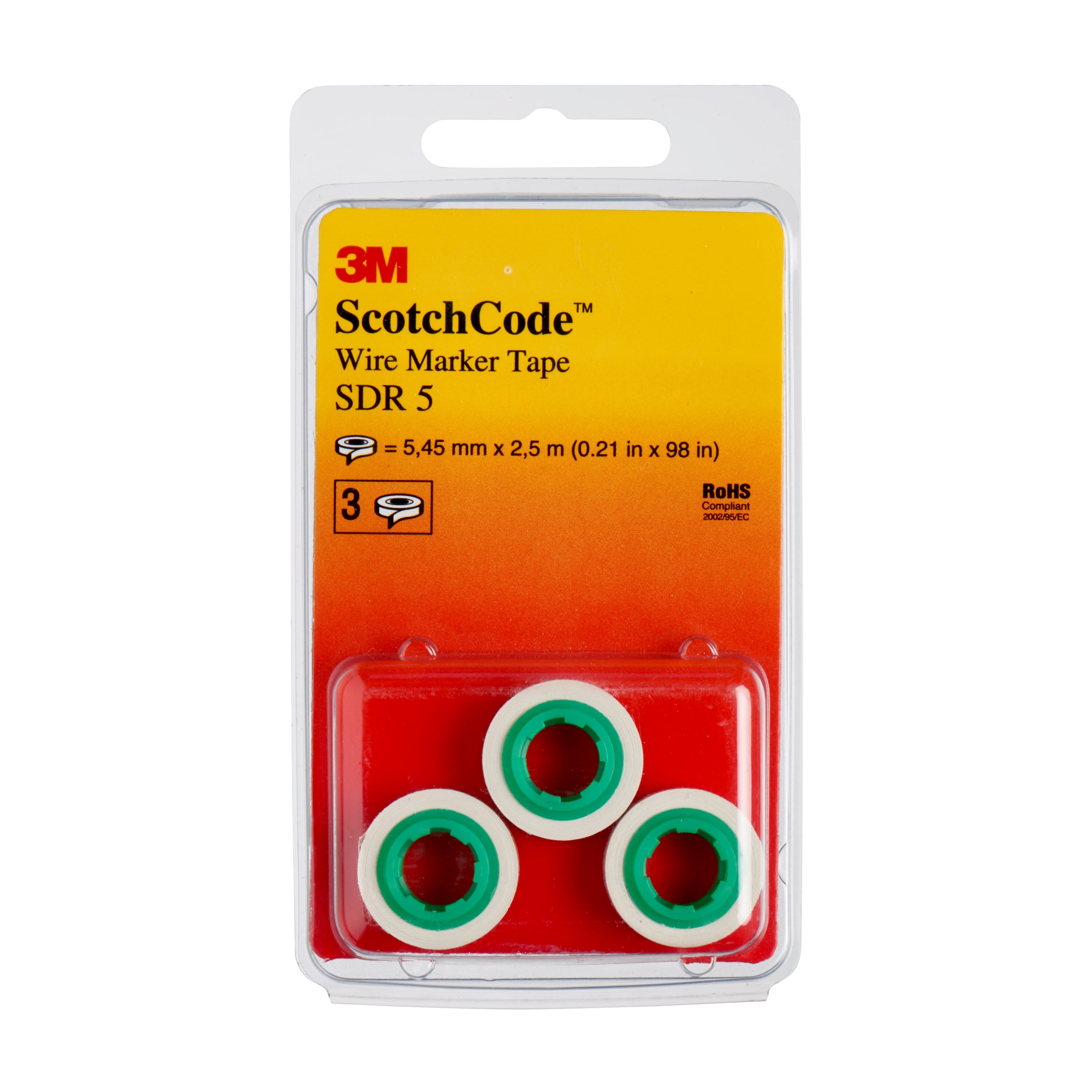 Nastri di ricambio 3M™ ScotchCode™ SDR_numero 5 A completamento dell'erogatore di nastro 3M™ Scotchcode™, il ricambio 3M™ Scotchcode™ (lettere e numeri) usa un sistema di adesione aggressivo. Con un supporto in pellicola di poliestere flessibile, il ricambio 3M™ Scotchcode™ (lettere e numeri) offre un nastro sottile e conformabile di estrema durata. La superficie liscia di questo nastro consente di rimuovere facilmente lo sporco, permettendo la leggibilità del testo anche dopo una lunga esposizione a un accumulo di contaminanti.