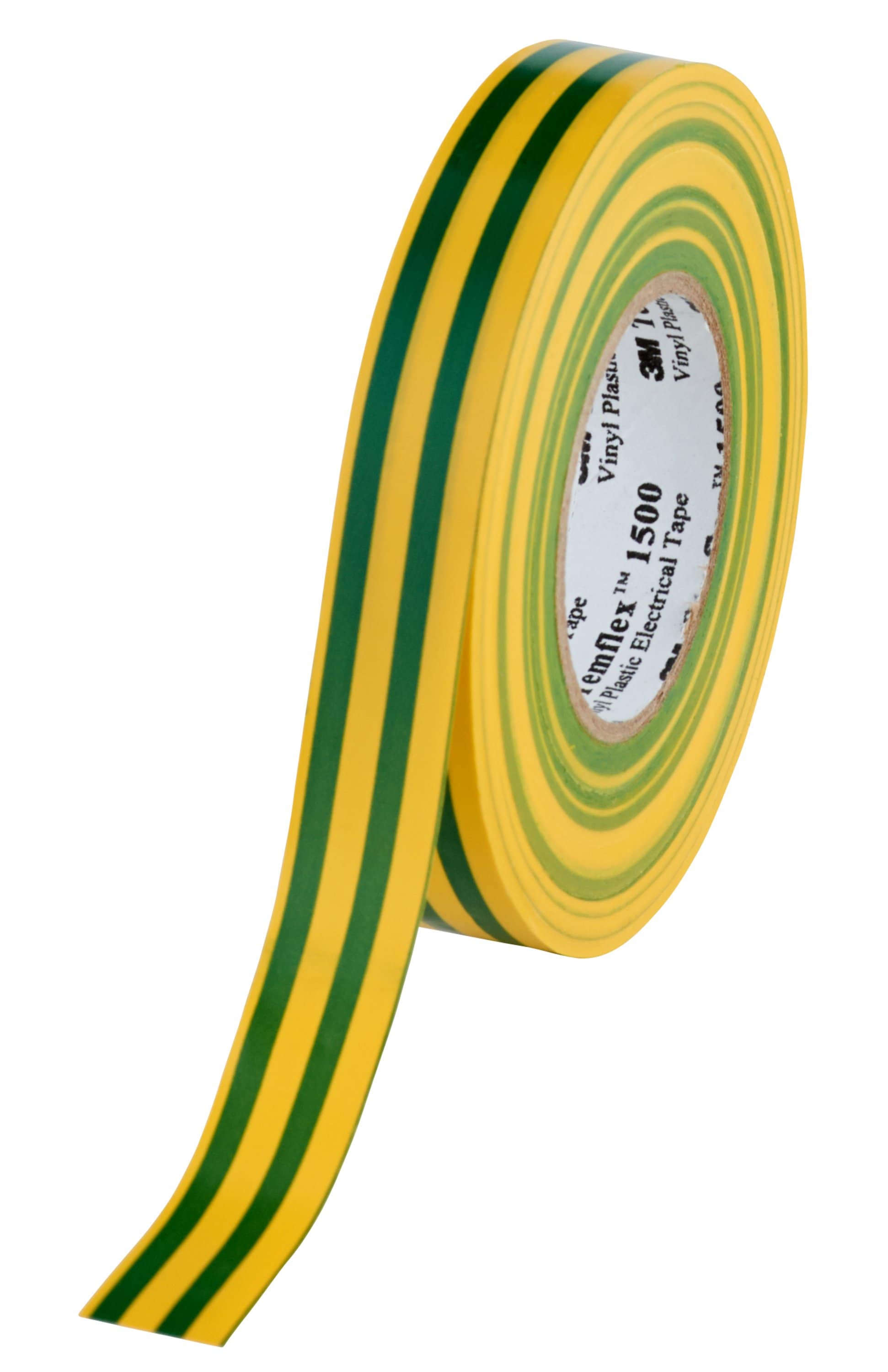 Nastro elettrico in PVC 3M™ Temflex™ 1500, Giallo/Verde 15mm x 10mt Il nastro elettrico in vinile 3M™ Temflex™ 1500 può essere usato per riparazioni, cablaggi e isolamento primario di fili e cavi (basso voltaggio). Questo nastro professionale offre alte prestazioni ed è adatto per l'uso in ambienti interni ed esterni. Utile per la posa di cavi, offre buona resistenza ad abrasione, acidi, alcali e alle variazioni delle condizioni atmosferiche - compresa la luce solare. Garantisce prestazioni elevate con temperature ambientali fino a 90 °C. Questo nastro è disponibile nei colori standard del settore.