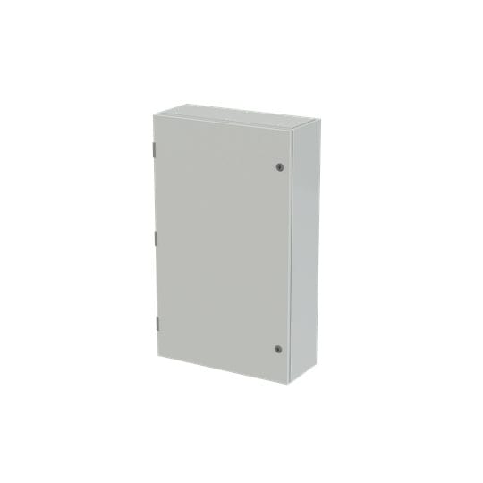 Cassa con porta cieca e piastra di fondo serie SR2, struttura in lamiera d'acciaio spessore 12/10, piastra di fondo in lamiera zincata spessore 20/10. Utilizzata per la realizzazione di quadri di comando e controllo delle più varie macchine industriali: da grossi macchinari a linee automatizzate di produzione o parti di esse, alle tipiche installazioni di quadri bordo macchina, a caldaie, impianti di riscaldamento ed altro ancora. Consente anche la realizzazione di quadri di distribuzione secondaria grazie alla possibilità di installare tutta la gamma di apparecchi e interruttori modulari su guide DIN abbinate ad appositi pannelli frontali modulari preforati e incernierati.