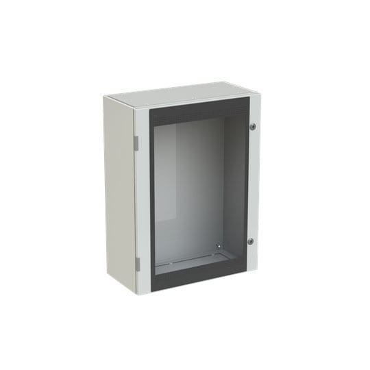 Cassa con porta in vetro senza piastra di fondo serie SR2, struttura in lamiera d'acciaio spessore 12/10. Utilizzata per la realizzazione di quadri di comando e controllo delle più varie macchine industriali: da grossi macchinari a linee automatizzate diproduzione o parti di esse, alle tipiche installazioni di quadri bordo macchina, a caldaie, impianti di riscaldamento ed altro ancora. Consente anche la realizzazione di quadri di distribuzione secondaria grazie alla possibilità di installare tutta la gamma di apparecchi e interruttori modulari su guide DIN abbinate ad appositi pannelli frontali modulari preforati e incernierati.