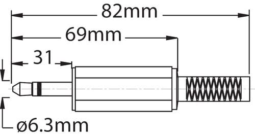 ** Caratteristiche Generali ** Genere: Spina Tipo Connettore: Jack Colore: Nero Orientamento: Dritto Qualità: HQ Nr. Poli: 2 Canali: Mono ** Caratteristiche Meccaniche ** Materiale Corpo: PVC Materiale Contatto: Ottone nichelato Tipo contatto: a saldare Montaggio connettore: volante Diametro Pin: 6.3mm