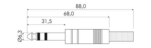 ** Caratteristiche Generali ** Genere: Spina Tipo Connettore: Jack Orientamento: Dritto Nr. Poli: 3 Canali: Stereo ** Caratteristiche Meccaniche ** Materiale Corpo: Ottone nichelato Materiale Contatto: Ottone nichelato Tipo contatto: a saldare Montaggioconnettore: volante Diametro Pin: 6.3mm