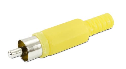 ** Caratteristiche Generali ** Genere: Spina Tipo Connettore: RCA Colore: Giallo Orientamento: Dritto Adatto per: Fam.18 ** Caratteristiche Meccaniche ** Materiale Corpo: PVC Materiale Contatto: Ottone nichelato Tipo contatto: a saldare Montaggio connettore: volante