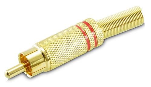 ** Caratteristiche Generali ** Genere: Spina Tipo Connettore: RCA Colore: Rosso Orientamento: Dritto Adatto per: Cavo ø5 mm ** Caratteristiche Meccaniche ** Materiale Corpo: Ottone placcato oro Materiale Contatto: Ottone placcato oro Tipo contatto: a saldare Montaggio connettore: volante