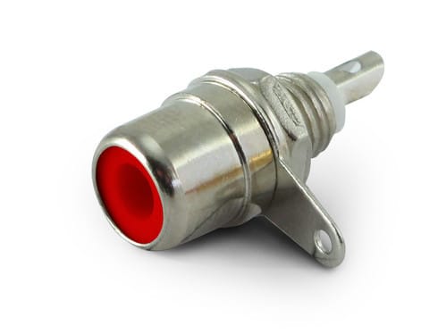 ** Caratteristiche Generali ** Genere: Presa Tipo Connettore: RCA Colore: Rosso Adatto per: Fam.17 ** Caratteristiche Meccaniche ** Materiale Corpo: Ottone nichelato Materiale Contatto: Ottone nichelato Tipo contatto: a saldare Montaggio connettore: pannello