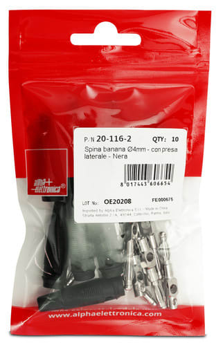 ALPHA ELETTRONICA SR - ALP20-116-2 Banana plug 4mm - with side grip - Black