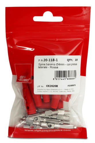 ALPHA ELETTRONICA SR - ALP20-118-1 Banana plug 4mm - with side grip - Red