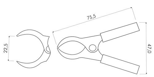 ** Caratteristiche Generali ** Tipo Connettore: Pinza Colore: Nero ** Caratteristiche Elettriche ** Corrente max: 30A Tensione max: 50V ** Caratteristiche Meccaniche ** Materiale Corpo: PVC Materiale Contatto: Acciaio nichelato
