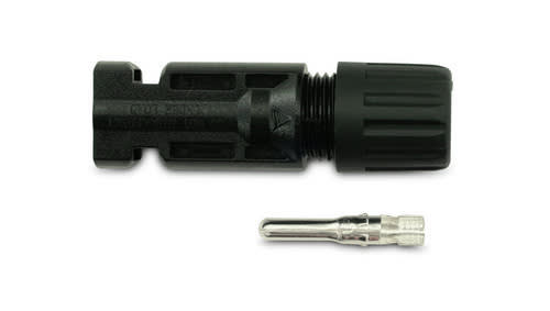 Il connettore fotovoltaico è estremamente facile da utilizzare, efficiente e rapido da installare. Dotato di serracavi e interblocchi incorporati garantisce una connessione affidabile e duratura di impianti fotovoltaici. Questi interblocchi assicurano unaccoppiamento sicuro e protezione contro lo sgancio accidentale tra connettori maschio e connettori femmina. Offre un elevato livello di stabilità, isolamento, resistenza e protezione per un connettore fotovoltaico solare affidabile. ** Caratteristiche Generali ** Genere: Presa Colore: Nero Genere Corpo: Femmina Genere Contatto: Maschio ** Caratteristiche Elettriche ** Corrente max: 30A Tensione max: 1000V Tensione Isolamento: 6 KV ** Caratteristiche Meccaniche ** Materiale Corpo: PPO Materiale Contatto: Rame stagnato Tipo contatto: a crimpare Terminazione: a crimpare Montaggio connettore: volante Sezione conduttori: 4-6mm² Diametro cavo min: 4.7mm Diametro cavo max: 6.4mm Grado di protezione: IP65 ** Caratteristiche Termiche ** Classe di infiammabilità: UL94V-0