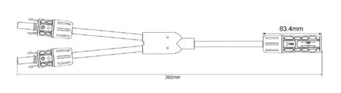 Giunto a Y con cavi solari di lunghezza totale 36cm adatto per collegare in parallelo pannelli solari dotati di cavi e connettori fotovoltaici.