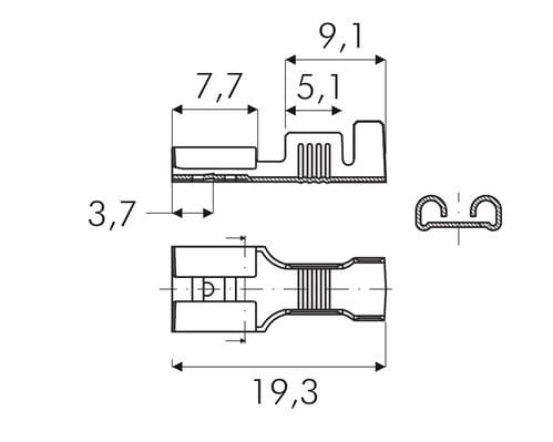 ø Isolante: 4,2 - 5,1mm Spessore maschio: 0,80mm Spessore materiale: 0,42 ** Caratteristiche Generali ** Genere: Presa Tipo Connettore: faston 6,35 ** Caratteristiche Meccaniche ** Materiale Corpo: Ottone Tipo contatto: faston 6.3mm Terminazione: a crimpare Sezione conduttori: 3-6mm²