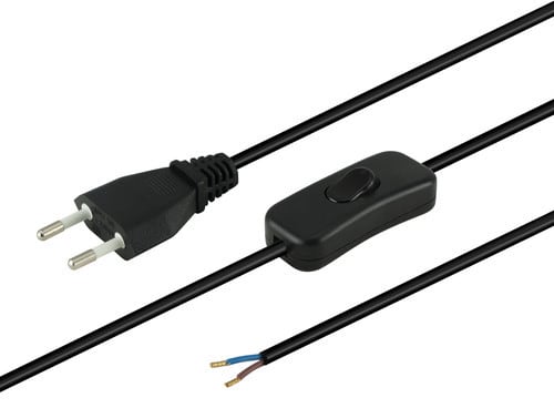 ** Caratteristiche ** Colore cavo: Nero Lunghezza Cavo: 2m Formazione cavo: 2 x 0.75mm² Tipo Cavo: Piatto Portata: 2.5A Tensione massima: 250V Nome tecnico: H03VVH2-F Interruttore: Volante ** Connettore A ** Tipo Connettore A: Spina 2 poli Europa Dritto ** Connettore B ** Tipo Connettore B: Cavo Spellato