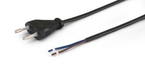 ** Caratteristiche ** Colore cavo: Nero Lunghezza Cavo: 1.5m Formazione cavo: 2 x 0.75mm² Tipo Cavo: Piatto Portata: 2.5A Tensione massima: 250V Nome tecnico: H03WH2-F ** Connettore A ** Tipo Connettore A: Spina 2 poli Europa Dritto ** Connettore B ** Tipo Connettore B: Cavo Spellato