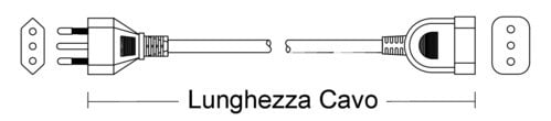** Caratteristiche ** Colore cavo: Nero Lunghezza Cavo: 5m Formazione cavo: 3 x 0.75mm² Tipo Cavo: Tondo Portata: 10A Tensione massima: 250V Nome tecnico: H05W-F ** Connettore A ** Tipo Connettore A: Spina Italia 10A Dritto ** Connettore B ** Tipo Connettore B: Presa Italia 10A Dritto