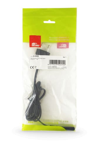 ** Caratteristiche ** Colore cavo: Nero Lunghezza Cavo: 1.5m Formazione cavo: 2 x 0.75mm² Tipo Cavo: Piatto Portata: 2.5A Tensione massima: 250V Nome tecnico: H03WH2-F ** Connettore A ** Tipo Connettore A: Spina 2 poli Europa Dritto ** Connettore B ** Tipo Connettore B: Spina IEC320 C7 Dritto