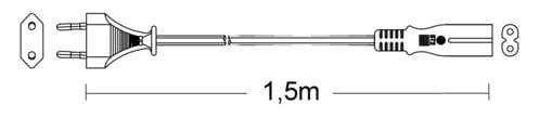 ** Caratteristiche ** Colore cavo: Bianco Lunghezza Cavo: 1.5m Formazione cavo: 2 x 0.75mm² Tipo Cavo: Piatto Portata: 2.5A Tensione massima: 250V Nome tecnico: H03WH2-F ** Connettore A ** Tipo Connettore A: Spina 2 poli Europa Dritto ** Connettore B** Tipo Connettore B: Spina IEC320 C7 Dritto