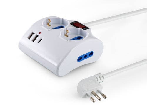 ** Caratteristiche Generali ** Colore: Bianco Tipo di prese: Bipasso P17/11, Universale Italia P40 Numero di prese Bipasso: 2 Numero di prese Universali: 2 Numero di Prese Totali: 7 Tipo di spina: Italia 10A - 10A 2P+T S11 - Salvaspazio ad angolo ** Caratteristiche Elettriche ** Tensione max: 250V Corrente max: 10A Potenza max collegabile: 2500W ** Caratteristiche Meccaniche ** Materiale corpo: Termoplastico rinforzato Materiale contatti: Lega di rame Cavo Alimentazione: H05VV-F 3G1 3x1,0mm² Lunghezza cavo complessiva: 1.5m Colore cavo: Bianco Accensione: Con interruttore luminoso Sistemi sicurezza: Alveoli protetti da contatti accidentali, Prese con protezione bimbi Protezioni: Messa a terra per ogni presa, Sovraccarico