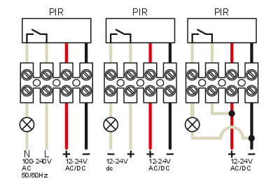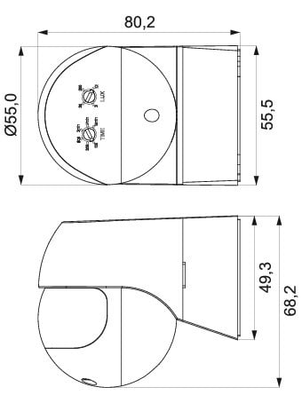 ** Caratteristiche Generali ** Principio di funzionamento: Infrarossi Colore: Bianco ** Caratteristiche Elettriche ** TipoTensione: ac/dc Tens. funzionamento DC: 12‑24Vdc Tens. funzionamento AC: 12‑24Vac Frequenza: 50-60Hz Consumo energeticooperativo: 0.5W Classe Isolamento: II ** Caratteristiche dei contatti ** Configurazione contatti: 1 NO Tensione commutabile max: 230V Corrente istantanea max: 5A ** Installazione ** Luogo d'impiego: Esterno/Interno Montaggio: Parete Altezza d'installazione: 1.8 - 2.5m Campo di rilevamento: 180° Range max di movimento: 12m ** Caratteristiche Meccaniche ** Dimensioni (LxWxH): 55.5 x 68.2 x 80.2mm Grado di protezione: IP44 ** Regolazioni ** Periodo di accensione: 10s - 15min Livello di luminosità: 3 - 2000lux ** Caratteristiche Termiche ** Temp. di funzionamento: -10 / 40°C