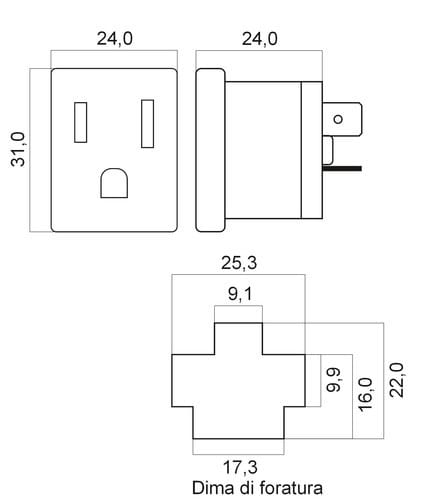 ALPHA ELETTRONICA SR - ALP23-14 PRESA DA PANN AMERICANA 3 POLI