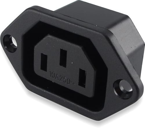 ** Caratteristiche Generali ** Genere: Presa Norma di riferimento: EN 60320 Foglio tecnico: C13 ** Caratteristiche Elettriche ** Corrente max: 10A Tensione max: 250V ** Caratteristiche Meccaniche ** Materiale Corpo: Termoplastico rinforzato con fibra di vetro Materiale Contatto: Lega di rame Tipo contatto: faston 4.8mm Montaggio connettore: pannello Foro fissaggio: 31.8mm x 23.5mm ** Caratteristiche Termiche ** Temperatura di lavoro: 0/70°C