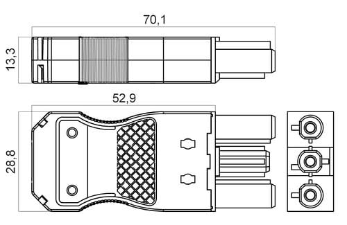 ** Caratteristiche Generali ** Genere: Presa Tipo Connettore: Mazzeri Colore: Nero Orientamento: Dritto ** Caratteristiche Elettriche ** Corrente max: 16A Tensione max: 500V ** Caratteristiche Meccaniche ** Terminazione: serraggio a vite Montaggio connettore: volante Sezione conduttori: 0.75-1.5mm² Classe di infiammabilità: UL 94 V-2
