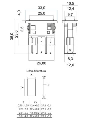 ** Corpo: ** Termoplastico rinforzato con fibra di vetro ** Terminali ** Faston 6,3mm ** Contatti: ** Lega di rame ** Corrente Max.: ** 10A ** Tensione Max.: ** 250 V~ Dima di foratura: 27x12mm ** Caratteristiche Generali ** Genere: Presa Colore: Nero Qualità: HQ ** Caratteristiche Elettriche ** Corrente max: 10A Tensione max: 250V ** Caratteristiche Meccaniche ** Materiale Corpo: Termoplastico rinforzato con fibra di vetro Materiale Contatto: Lega di rame Tipo contatto: faston 6.3mm Montaggio connettore: pannello ** Caratteristiche Termiche ** Temperatura di lavoro: 0/70°C