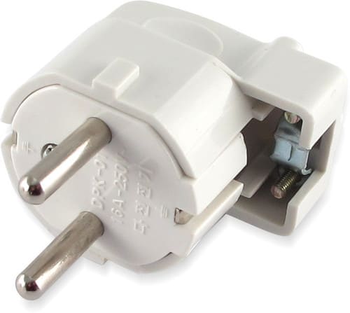 ** Caratteristiche Generali ** Genere: Spina Tipo Connettore: Schuko Colore: Bianco Orientamento: 90° ** Caratteristiche Elettriche ** Corrente max: 16A Tensione max: 250V Potenza max: 1500W ** Caratteristiche Meccaniche ** Materiale Corpo: Termoplastico rinforzato Materiale Contatto: Lega di rame