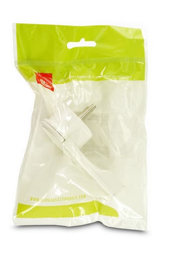 ** Caratteristiche Generali ** Genere: Spina Tipo Connettore: Schuko Colore: Bianco Orientamento: 90° ** Caratteristiche Elettriche ** Corrente max: 16A Tensione max: 250V ** Caratteristiche Meccaniche ** Terminazione: serraggio a vite Montaggio connettore: volante