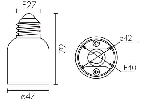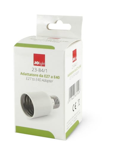 ** Caratteristiche Generali ** Attacco A: Maschio E27 Attacco B: Femmina E40 ** Caratteristiche Elettriche ** Tensione max: 240V Corrente max: 2A ** Caratteristiche Meccaniche ** Materiale corpo: Plastico ** Caratteristiche Termiche ** Temp. di funzionamento: 0 / 35°C