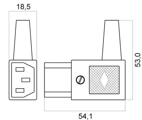 ** Caratteristiche Generali ** Genere: Presa Norma di riferimento: EN 60320 Foglio tecnico: C13 Orientamento: 90° Qualità: HQ ** Caratteristiche Elettriche ** Corrente max: 10A Tensione max: 250V ** Caratteristiche Meccaniche ** Materiale Corpo: Termoplastico rinforzato con fibra di vetro Materiale Contatto: Lega di rame Tipo contatto: a vite Montaggio connettore: volante ** Caratteristiche Termiche ** Temperatura di lavoro: 0/70°C