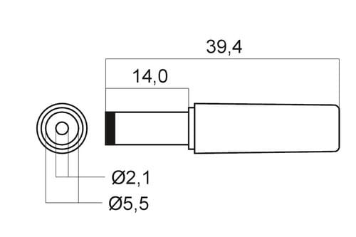 ** Caratteristiche Generali ** Genere: Spina Colore: Nero Orientamento: Dritto ** Caratteristiche Meccaniche ** Materiale Corpo: PVC Materiale Contatto: Ottone nichelato Tipo contatto: a saldare Montaggio connettore: volante Diametro Esterno: 5.5mm Diametro Interno: 2.1mm Lunghezza Contatto: 14mm