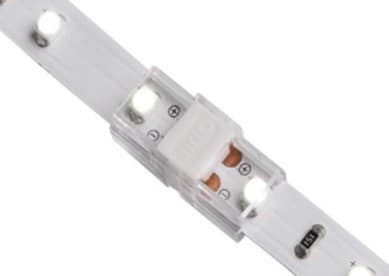 ** Caratteristiche Generali ** Adatto per tipo di Led: SMD Adatto per striscia: Monocolore Larghezza nastro: 8mm Tipo connettore: Connettore striscia/fili Sezione AWG: 20AWG N. Poli: 2 ** Caratteristiche Elettriche ** Tens. funzionamento DC: 3‑24Vdc Corrente max: 5A ** Caratteristiche Meccaniche ** Lunghezza: 15.4mm Larghezza: 9.5mm Altezza: 4.3mm Grado di protezione: IP20 Tipo contatto: a pressione