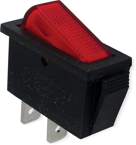 ** Caratteristiche Generali ** Attuatore: Bilanciere Serigrafia: Nessuna Luminoso: no Colore: Rosso Materiale attuatore: Plastica Tipi contatti: SPST Portata: 15A@250Vac, 20A@125Vac N. poli: 1 Stato dei contatti: ON/OFF Tipo terminale: faston 6,3 N. terminali: 2 Montaggio: Pannello a incastro Foro fissaggio: 10.6mm x 30.3mm