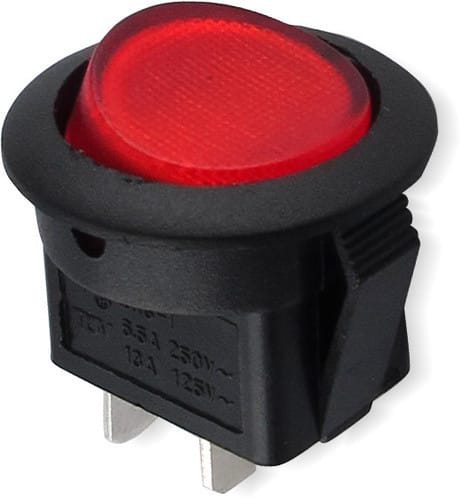 ** Caratteristiche Generali ** Attuatore: Bilanciere Serie: Miniatura Serigrafia: Nessuna Luminoso: no Colore: Rosso Materiale attuatore: Plastica Tipi contatti: SPST Portata: 6.5A@250Vac, 13A@125Vac N. poli: 1 Stato dei contatti: ON/OFF Tipo terminale: faston 4,8 N. terminali: 2 Montaggio: Pannello a incastro Foro fissaggio: ø20.6mm