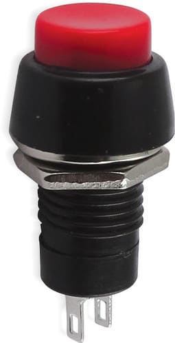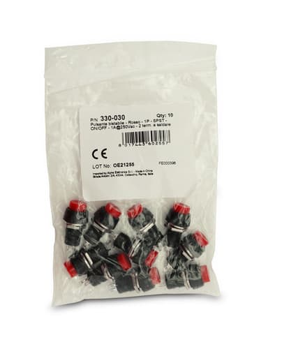 ** Caratteristiche Generali ** Attuatore: Pulsante Serigrafia: Nessuna Luminoso: no Colore: Rosso Materiale attuatore: Plastica Tipi contatti: SPST Portata: 1A@250Vac, 3A@125Vac N. poli: 1 Stato dei contatti: ON/OFF Tipo terminale: a saldare N. terminali: 2 Montaggio: Pannello con dado Foro fissaggio: ø10mm