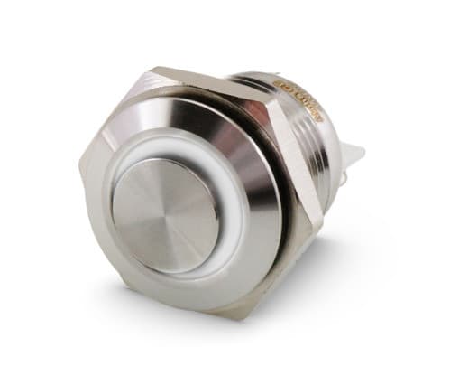 ** Caratteristiche Generali ** Attuatore: Pulsante antivandalo Serie: Antivandalo Forma dell'attuatore: In rilievo Serigrafia: Nessuna Luminoso: si Colore illuminazione: Bianco Tensione illuminazione: 12Vac/dc Colore: Metallo Materiale attuatore: Acciaio Tipi contatti: SPST Portata: 3A@36Vac/dc, 3A@12Vac/dc N. poli: 1 Stato dei contatti: OFF/(ON) - N.A. Tipo terminale: vite N. terminali: 3 Montaggio: Pannello con dado Foro fissaggio: ø16mm Grado di protezione: IP65 Temperatura di lavoro: -20 / 55°C