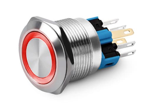 ** Caratteristiche Generali ** Attuatore: Pulsante antivandalo Serie: Antivandalo Forma dell'attuatore: Piatto Luminoso: si Colore illuminazione: Rosso Tensione illuminazione: 24Vac/dc Colore: Metallo Materiale attuatore: Acciaio Tipi contatti: SPST Portata: 5A@250Vac, 5A@36Vdc N. poli: 2 Stato dei contatti: N.C. + N.A. Tipo terminale: a saldare N. terminali: 6 Montaggio: a pannello Foro fissaggio: ø22mm Grado di protezione: IP65 Temperatura di lavoro: -20 / 55°C