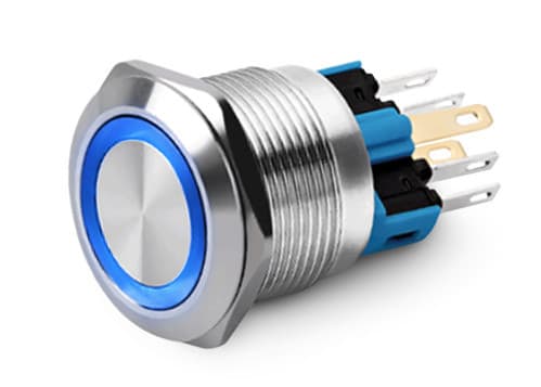 ALPHA ELETTRONICA SR - ALP330-078L-5 PULS.INT.1P ON/OFF SALD. ACCIAIO22MM BLU