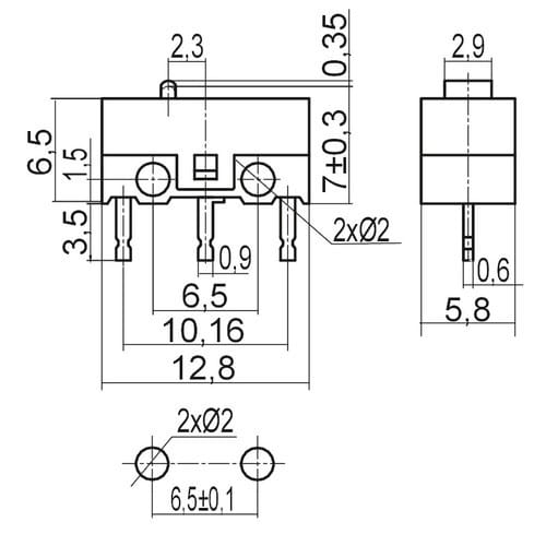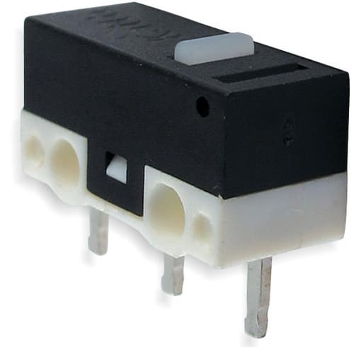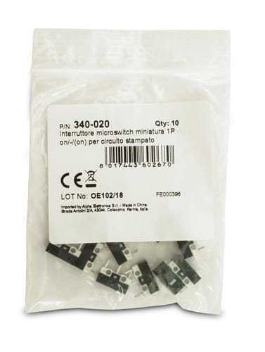 ** Caratteristiche Generali ** Attuatore: Microswitch Serie: Miniatura Serigrafia: Nessuna Luminoso: no Materiale attuatore: Plastica Tipi contatti: SPDT Portata: 1A@250Vac, 1A@125Vac N. poli: 1 Stato dei contatti: (ON)/ON Tipo terminale: cs N. terminali: 3