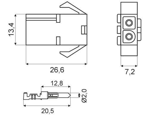 ** Caratteristiche Generali ** Genere Corpo: Femmina Genere Contatto: Maschio ** Caratteristiche Meccaniche ** Materiale Corpo: Nylon 6 Materiale Contatto: Ottone stagnato Tipo contatto: a crimpare Montaggio connettore: pannello