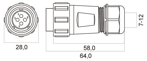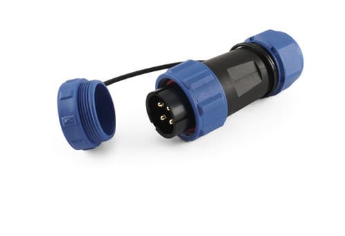 ** Caratteristiche Generali ** Genere: Spina Orientamento: Dritto Nr. Poli: 4 Serie Fornitore: SP21 ** Caratteristiche Elettriche ** Corrente max: 30A Tensione max: 500V ** Caratteristiche Meccaniche ** Materiale Corpo: Nylon Materiale Contatto: Lega di rame dorata Tipo contatto: a saldare Montaggio connettore: volante Sezione conduttori: 0-4mm² Diametro cavo min: 4.5mm Diametro cavo max: 7mm Grado di protezione: IP68 ** Caratteristiche Termiche ** Temperatura di lavoro: -25/80°C